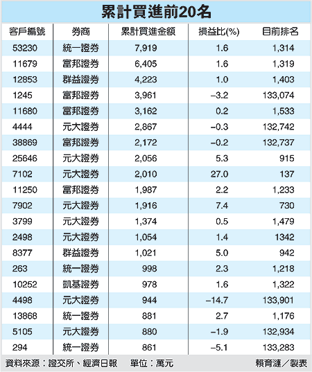 原文出自http://udn.com/NEWS/STOCK/STO6/5557704.shtml權民 五周買進15億元【經濟日報╱賴育漣 】 2010.04.25 03:21 am權民鬥陣搶百萬競賽上周所有參賽...