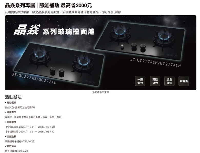 想把家裡的瓦斯爐換掉現在在用的這台 火忽大忽小 點火又慢有去家附近的廚具行問老闆推薦我喜特麗的晶焱系列說很耐用、報修率很低耐用是真的蠻重要之前買瓦斯爐就有踩過一次雷選了很熱門的品牌結果剛買就問題一堆搞了很久才幫...