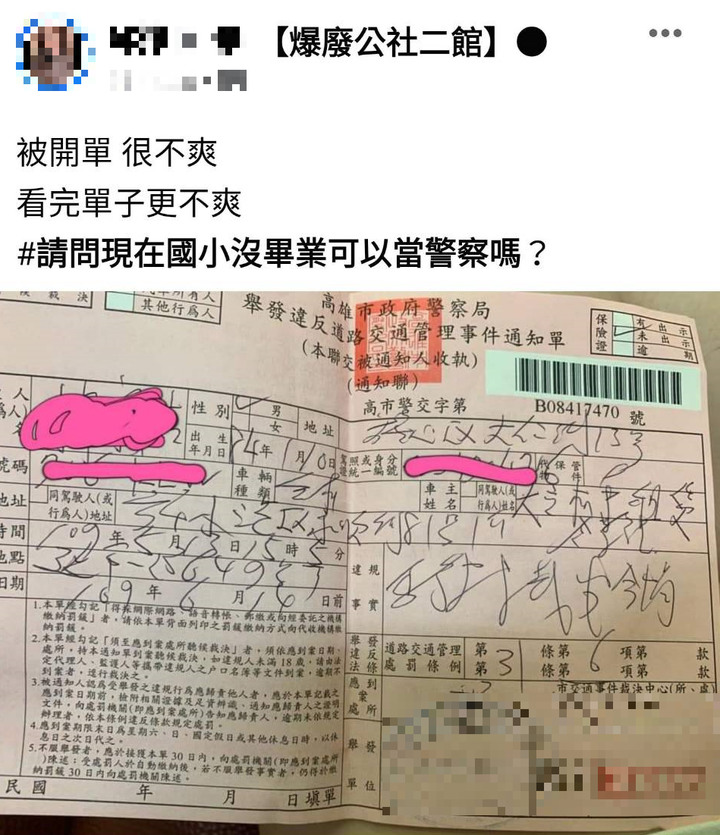 與台南成對比 高市警開罰單字跡潦草挨批!