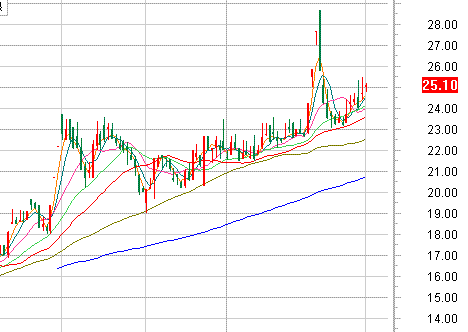 這檔我從23.6開始買,感覺有機會越過前高點28.7,先說好,個股研究自己判斷,損益自負。