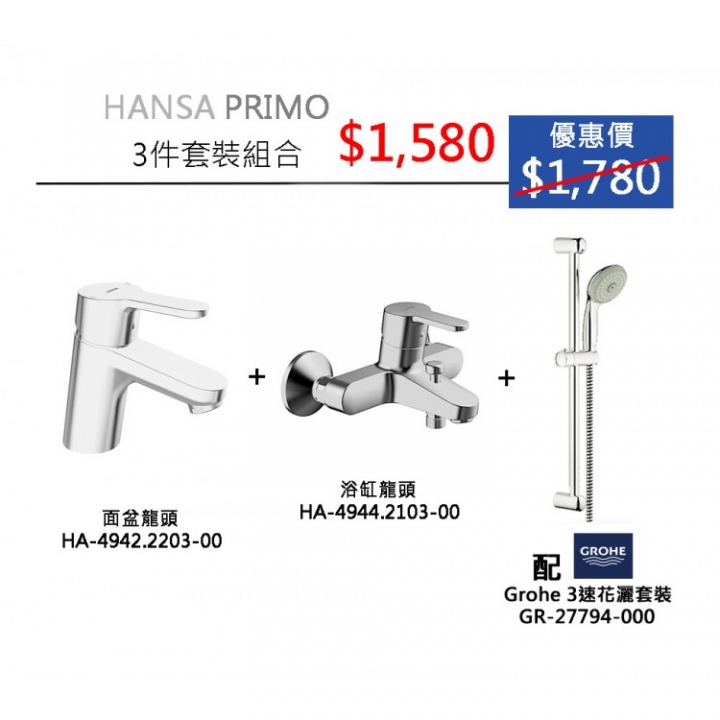 台灣的進口水龍頭實在太貴了,前陣子看到香港BathKitchen的網站有Hansa三件套裝組合在特價才賣1380港幣,而且還送一支HANSA Ronda的廚盆龍頭,外加一對德國的三角凡爾(港幣50元一對)和下水...