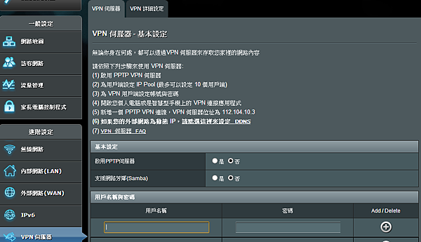 先前去大陸都是靠著自家的VPN來進行連線,也唯有這個方式才能順利在大陸連上Facebook或Mobile01等等台灣網站,而且ASUS的DDNS內建自家的名稱伺服器,只要輸入自己的定義名稱,就可以透過XXXX.asuscomm.com來連上自家的無線AP,而VPN也只需要設定連入的帳號密碼,就可以輕鬆連上自家VPN,很方便