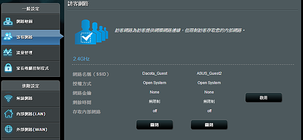 面對公司行號的各種需求,ASUS的網通部門也都想好了,除了原本的SSID之外,還讓你可以多三組訪客網路
