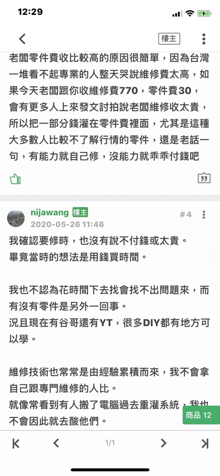 查價後發現:20元/顆+運費40元 vs. 零件費500元!!