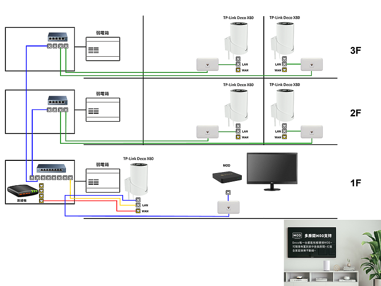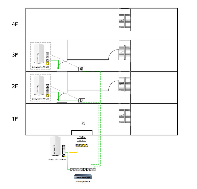 請問各位因為老婆常說WiFi 要一直切換很麻煩,所以想說組MESH來看看。決定買TP-Link的,想知道我這樣組對嗎?Ac86是因為mesh的網路孔不夠,會關掉它的WiFi充當switch 。全都是接線的字跡潦草,畫圖很糟請見諒…