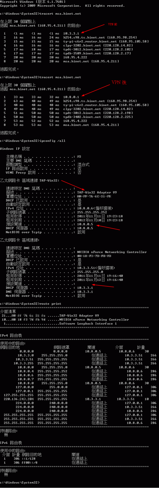 Physical Ethernet Adapter 的 Default Gateway 不會被停用. 不然 VPN Tunnel 要如何建立.