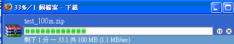 來個實測下載(一),OH MY GOD~~!竟然有1.1MB/sec....好快,這有8Mb頻寬速了吧........