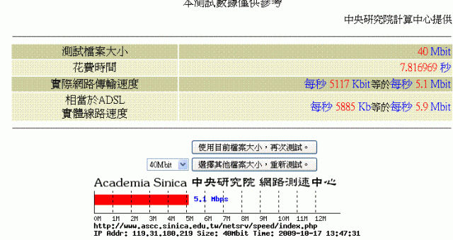 這裡就3.4Mbs,他的評語是--「還不錯啦,但是還有更好的」,不過我哥好像用台x大的,3Mbs測出來只有2Mbs....