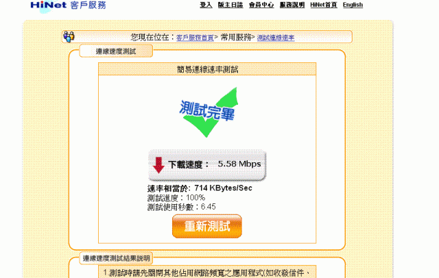 再來個hxnet的測試網,5.58Mbs......好快.....