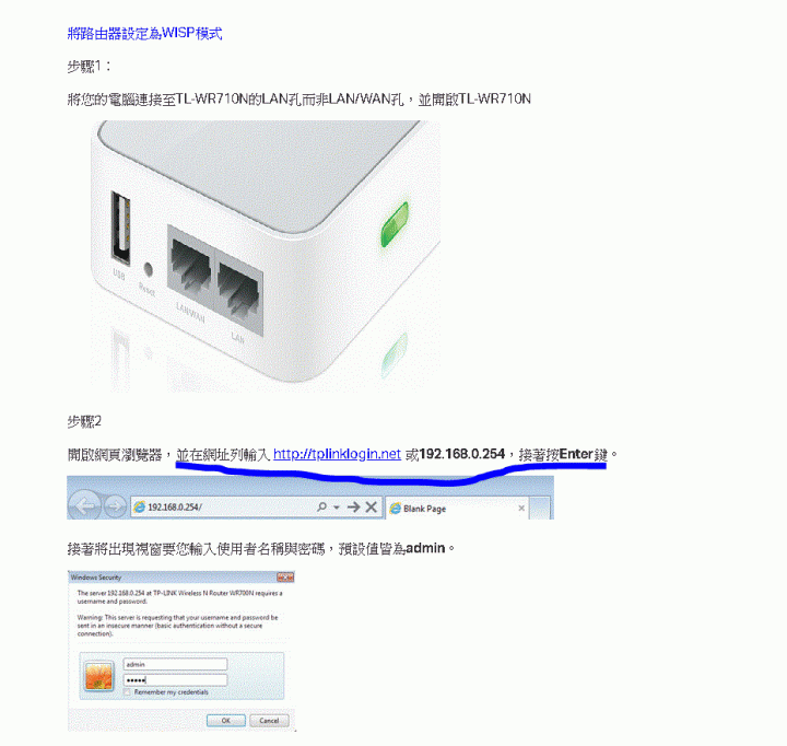 fdfdftr74 wrote:不是192.168.0.1,而是開啟網頁瀏覽器,並在網址列輸入 http://tplinklogin.net 或192.168.0.254,接著按Enter鍵。