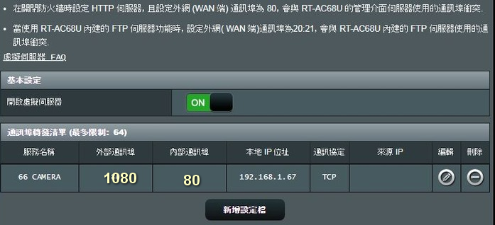 然後你內部port用80,外部port用8888之類的,那在外部連進來時,打對外固定ip加port:xxx.xxx.xxx.xxx:8888。