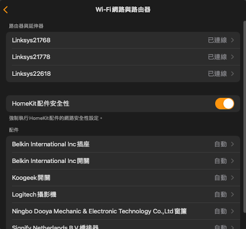 還好SSID沒改、密碼也不改,homekit也不用移除全連上了。