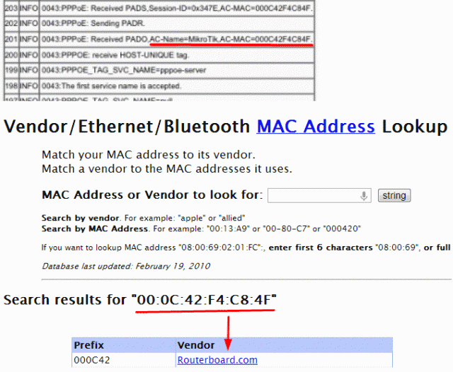 相信您說有二房東說法是對的.因為 log 裡有一段: AC-Name=MikroTik, 那時我在 #13 就覺得有點怪.CHT 用 MikroTik 的東西, 不是不可能, 但是機率相信不高.經查 那個 MAC 00:0C:42:F4:C8:4F 也確實是屬於 MikroTik 發出來的.所以, pppoe server 應該是二房東用 Routerboard 建立起來的.這一點也解釋了 為什麼會 CHAP Authentication failed.根本癥結就是帳密錯誤.不過, 小弟不是很瞭解 routerboard 是不是有出這樣用電話線連接 vdsl 到客戶的 DSL MODEM 設備, 也許認知不夠, 目前只知道他家有以一般 RJ45 Connector 網路線連接的產品...