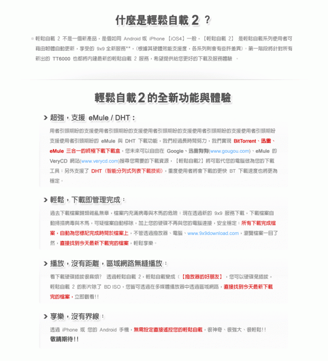 是呦真可惜我當時貪小便宜買了TT5000,TT6000現在好像已經支援eMule了未來來要支援iPhone 這些手機遠端遙控我在澳洲朋友的TT6100也都沒有支援在澳洲沒有下載影集遊戲日子很難熬阿噗~ 台傭的獨家省錢術~ 你之前也在這裡啊?我今天剛剛去看澳洲Vodafone的 3.5G行動網卡 才送2GB的頻寬超摳門的獅子頭0726 wrote:哈哈~ 之前說澳洲...(恕刪)