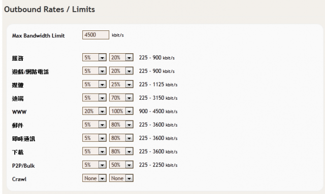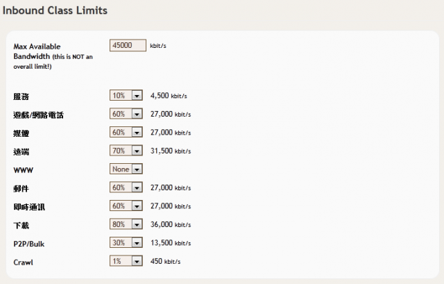 至於Outbound Rates Limits與Inbound Class Limits下面的有很多%選項我也