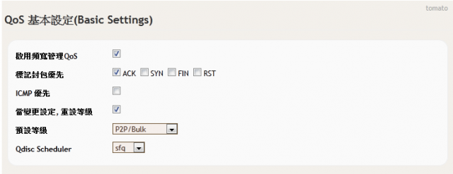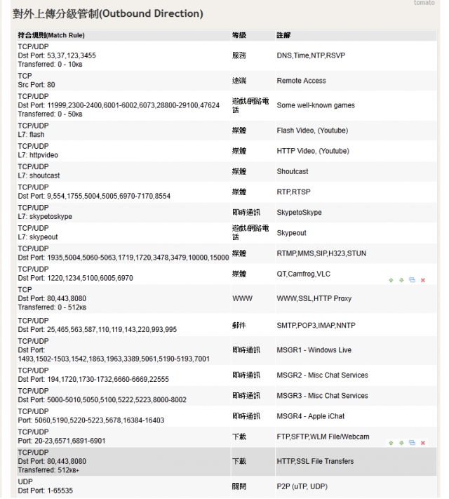結論:由於使用Toastman版的tomato有內建Toastman QOS rules,