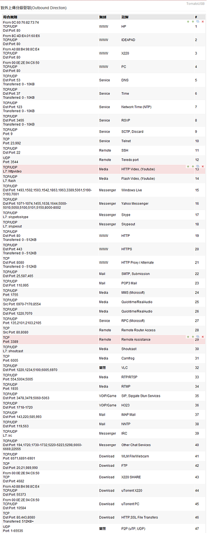 請教一下關於 Tomato Qos,我的下載軟體有uTorrent 與 share ex,QOS設好後,原本設在DOWNLOAD的資料,不是跑到Unclassified 就是 Crawl,都無法被規類在DOWNLOAD,是不是可以幫我看一下,應該怎麼設定比較好 謝謝