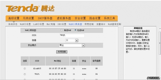 那我詳細用一下我的步驟圖一:開始進去的畫面,下方有默認無線加密的密碼(我都沒動他)之後點右上方的高級設置圖二:高級設置--WAN介質類型----尋找無限WAN,安全模式那我沒點預設就是禁用圖三:系統狀態--已連線圖四:打開網頁後,登入7-11WIFI圖五:筆電登入成功下面這三張圖是無線設置的,我是都沒點選以上是我設置的,但手機卻要輸入密碼