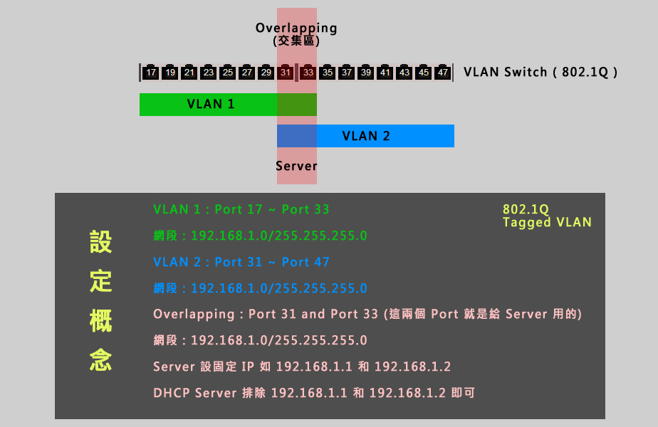 現在希望將這些電腦分成兩組 (兩群), 讓無關的兩群電腦各自有各自的網段,互相不能看到對方,並連接各自的無線分享器上網。不知該如何做到?