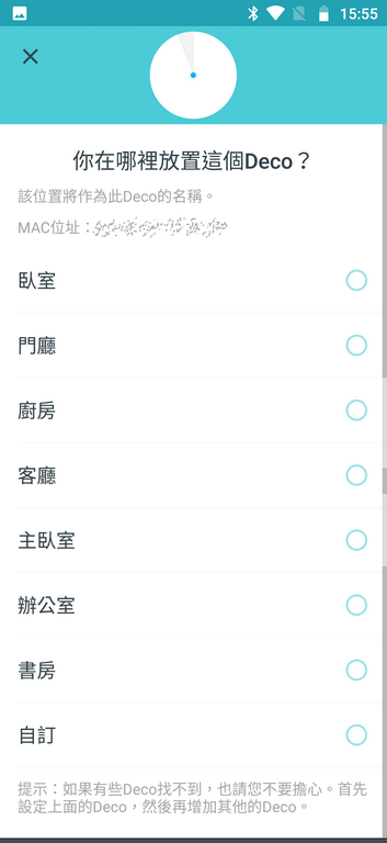 這邊要選一個你擺放 Deco M5 的位置,這個只是代表名稱,亂選也不會影響設定的