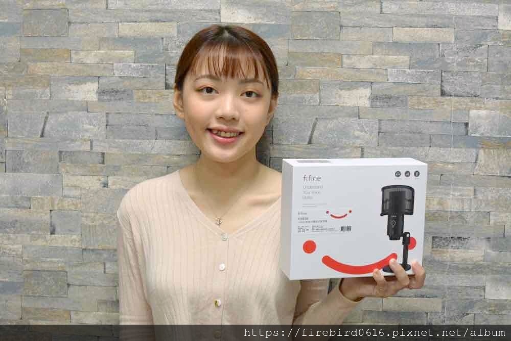 FiFine K683B包裝盒堅固,白色盒底印上產品本人照,加上紅色的微笑圖案,格外醒目,如同疫情期間大家的期望,希望能帶來微笑的新生活。