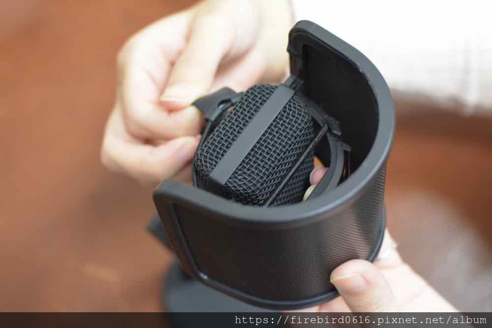 套上防噴網後的樣子,是不是很PRO?還沒發聲,氣勢先贏人三分。