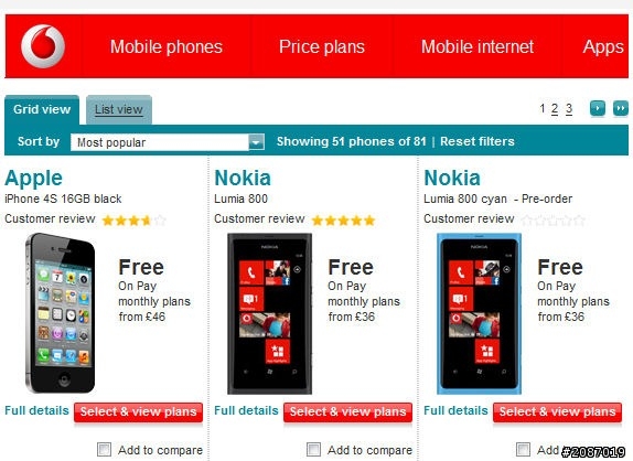 不到50萬支不過只是分析師分析明明還有很多好消息 德銀分析:Nokia 可以在第 4 季出售 200 萬部 Lumia 手機來源Lumia 800 超越所有 Android 手機, 登上 Vodafone 英國網上銷量第二位!Lumia 800 在英國上市一星期後,已在營運商 Vodafone 的網上商店登上最佳銷量的第二位。Lumia 800 的黑色版本和正預定的藍色版本都佔據第二和第三位,僅次於 iPhone 4S,但 Lumia 800 已超越 BlackBerry Bold 9900、白色 iPhone 4S、HTC Sensation 和 Samsung GALAXY S II。在荷蘭的營運商 KPN,也有相同的情況發生,Lumia 800 的銷量也是僅次於 iPhone 4S。法國方面,歐洲最大手機零售商 Phonehouse 也錄得 Lumia 800 是持續一星期賣得最好的手機。來源