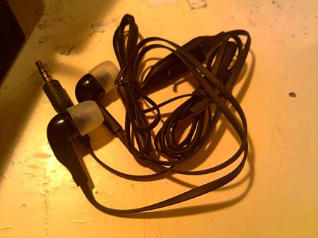 ▲ 入耳式線控耳機,含有麥克風及接聽鍵,音質還不差。