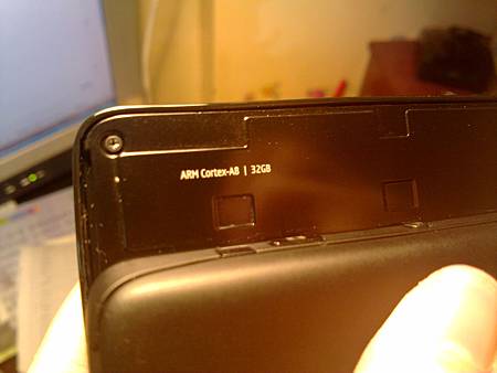 ▲ 滑蓋打開左側寫著CPU型號 ARM Cortex-A8,以及內建超大容量 32GB