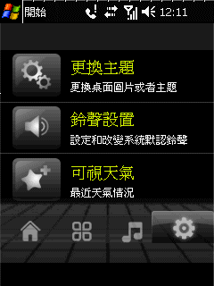 to gt4kuo 兄: 小弟的天氣控制台並未出現您所說的情形。您的狀況,看起來可能在天氣控制台的捷徑設定上(一週天氣的圖示資料夾,捷徑應該有所錯誤),使得螢幕出現圖示過大、擠在一起的情形。to m8088 兄:出現方格虛線的原因,可能在於下方標籤的圖示大小(尺寸以及圖示是否為正方形)。以小弟的經驗,若是下方使用五個切換標籤,圖示尺寸48x48不會出現虛線,四個切換標籤的話,可能就必須使用60x60的尺寸,才不會出現虛線。UL+WAD其實蠻搭配的,小弟的新設定畫面:主要畫面首頁延展選單,向下滑動呼出行事曆 主頁往下按,喚出新選單