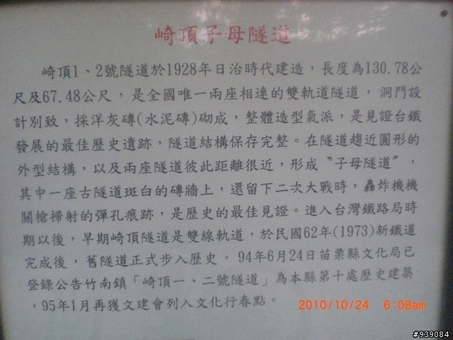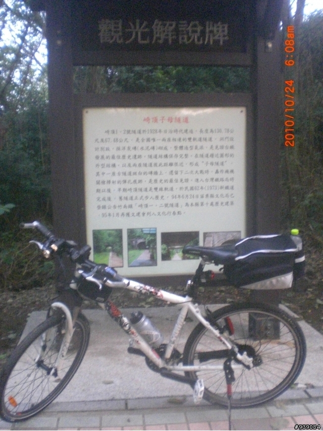 早上約4點半從家裡出發,五點多在造橋南邊就遇到晨騎車友,在永貞宮附近開始飄陣雨,騎到崎頂火車站,再去找舊隧道,也就是子母隧道﹝鐵道文化公園﹞崎頂火車站南隧道↓樹擋路﹝已經向公路局網站反映﹞↓西濱路上↓龍港火車站↓貝殼山↓海角樂園↓好望角下方古隧道↓好望角牌樓↓苗栗鐵道博物館↓上上星期的苗栗市古炭窯↓上星期的,通霄→苑裡→日南→三義→銅鑼→回家,日南火車站及火炎山隧道相片。