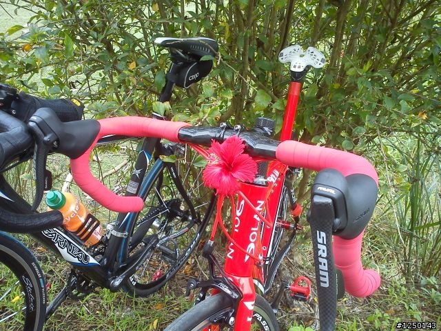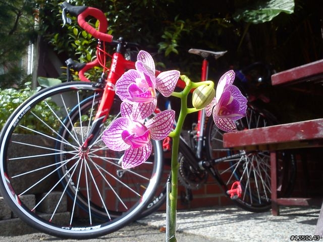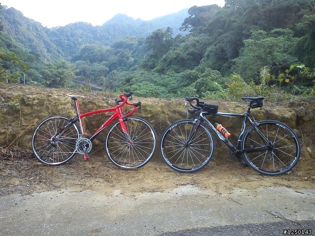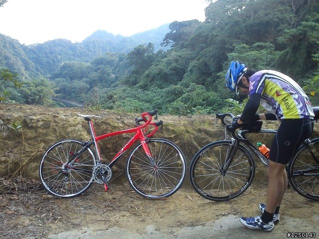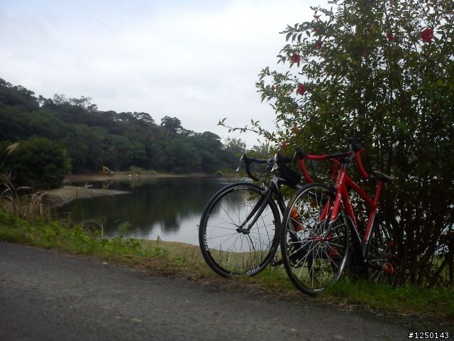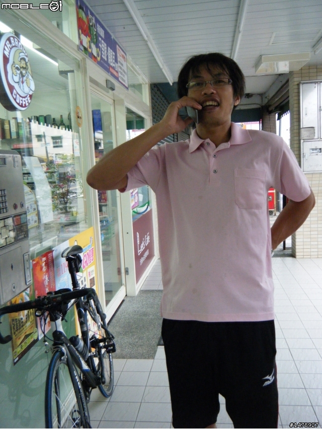 今天早上和小慎來去繞明德水庫一圈~試試車~先吃早餐囉~全家前的小黃~照一張~?看不清楚?直接照一張吧~笑的好喘XD~湖光水色~讓戰駒歇會兒~紅花?!沒有蜜~真難吃= =這是誰?好搭?應該要打馬賽克爬完22%的坡歇會看起來不怎樣吧~這有22%喔踩著標準盤快累死了= =仙草上桌~大碗滿意XD炸豆腐喔~喔~不是== ~是炸仙草從沒吃過~真相~吃完收工我們有來仙山喔~(仙山口)