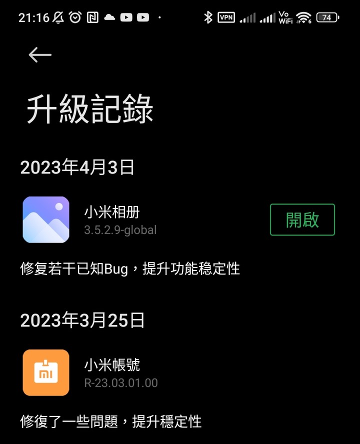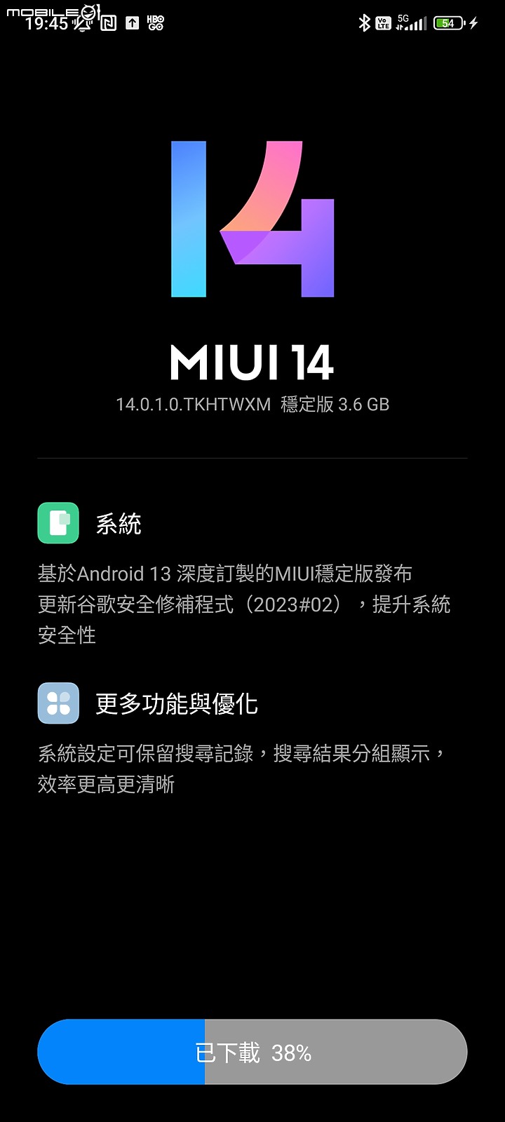 dmk wrote:同上。目前使用5G下...(恕刪) 更新完成。大致試了一下,MIUI 的設定有按照新版安卓的規劃,做了一些整併;因此有些功能要找一下,才能確定。1)先說不幸的消息,MIUI 14的第三方啟動器,例如Nova,完全進不到全螢幕,只能使用經典導航三鍵。這對我來說影響不大,因為我下一支手機絕對不會再考慮小米家族。如果你給客人預設的是三流啟動器,為啥要限制客戶一定要用內建啟動器。至於我另外安裝的全螢幕手勢軟體仍然可以運行,就是導航三鍵依然礙眼的存在。2)記憶體擴展可以有更大的選項不過在MIUI 13時,我有使用過。他會跟通知有所衝突,比如一小時前的臉書通知,我現在才點取的話,他會找不到正確的貼文位置。因此我便不再使用擴展記憶體。MIUI 14是否有改善?未知。而且我也不想測試。3)多了幾個程式,也少了部分內建程式。多的請參考Nova 啟動器程式集左下方的六個APP 。4)目前系統運作尚稱流暢,也沒有異常升溫。