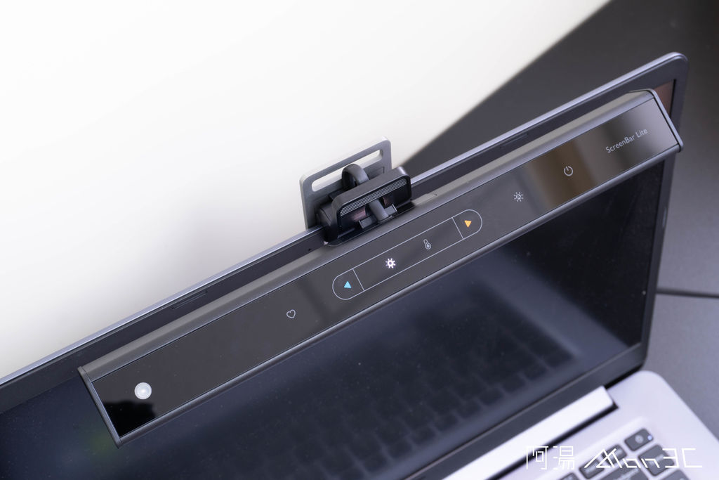 為了配合筆電,ScreenBar Lite由配重塊固定,改為用夾子固定,而夾子的背面採用金屬材質頗有質感