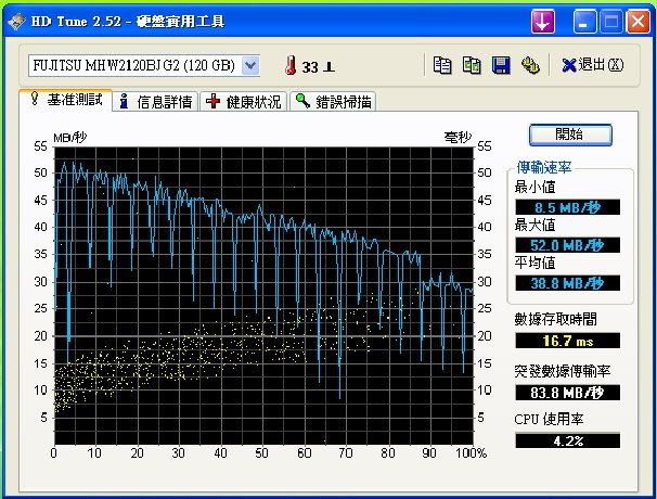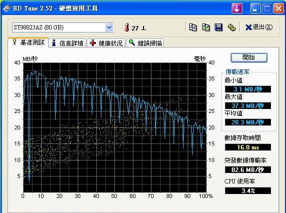 拆機前對舊有的SEAGATE 5400.2 的測試數據,看了真是傷心...