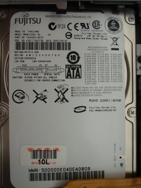 全新剛從靜電袋拿出的 FUJITSU MHW2120BJ..泰國製品