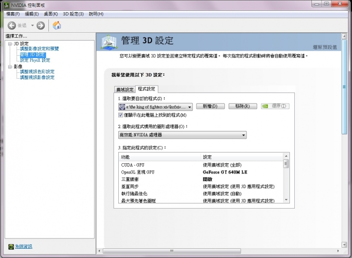 請教一下各位大大,小弟的筆電是Vaio有獨顯 Geforce GT 640m LE最近想要玩一下KOF14但是開啟遊戲的時候都一直跳出“無法開啟遊戲,錯誤OpenGL 4.3“Google了一下解決方式,發現要將顯卡驅動更新到最新然後呢,我把顯卡驅動更新到最新了,也確定這塊640m LE有支援OpenGL 4.3但是還是一樣沒有辦法執行遊戲,請問各位大神有沒有什麼idea是哪裡出了問題?先謝過大家!