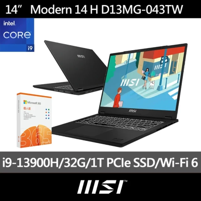 MSI M365★14吋i9 輕薄效能筆電(Modern 14 H/i9-13900H/32G/1TB SSD/W11P/D13MG-043TW)
