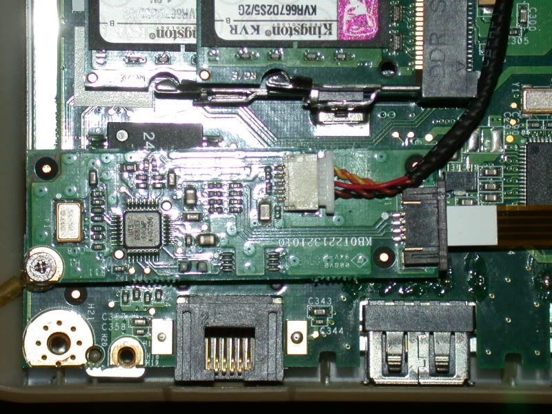 記憶體插槽近照,原廠配備有兩個插槽,出廠時配1G,最大支援2G,接手時已經升級為2隻2G,而且系統也能正確顯示4G