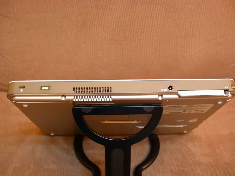 由左而右為防盜鎖孔,指紋辨識,散熱孔,DC-in,PCMEIA插槽,