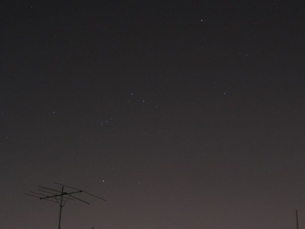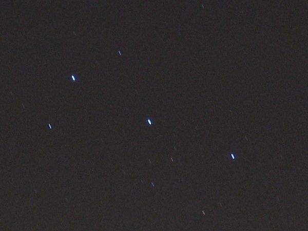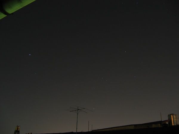 但是, 這照片並非全部造假, 小弟拍攝時那角度的確是北斗七星的方位, 只是小弟是以DC拍攝, ISO200, F2.8, T=8s的設定, 並不能真的去拍出美麗的星象, 頂多可能就是星星的位置亮度比雜訊多一點而已, 勉強能判斷那是星星, 而非雜訊. 小弟的這兩張照片都經過後製, 多次的降噪處理及增強對比和亮度, 才能夠調整出可供判斷出星座的照片.