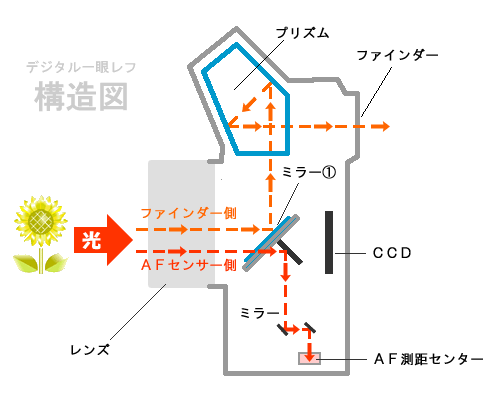 晴芹 wrote:你解釋得很清楚,但我老實說看得很模糊..若要改用LCD取景機器裡面就必須要有反光鏡...(恕刪) 樓主弄錯囉!看的模糊?用力看!反光鏡是將影像反射給視景窗用,LCD是反光鏡上昇後,影像直接投射到image sensor再輸出到LCD銀幕趕快買一抬來練功,要學的來很多路過機婆...補一下單眼的構造圖1號就是Mirror(反光鏡)