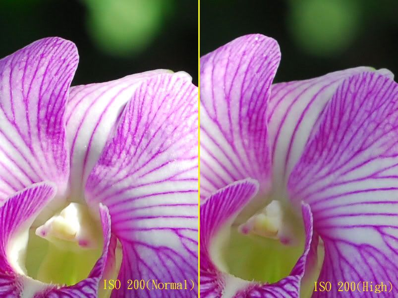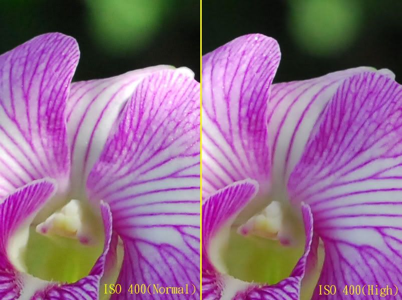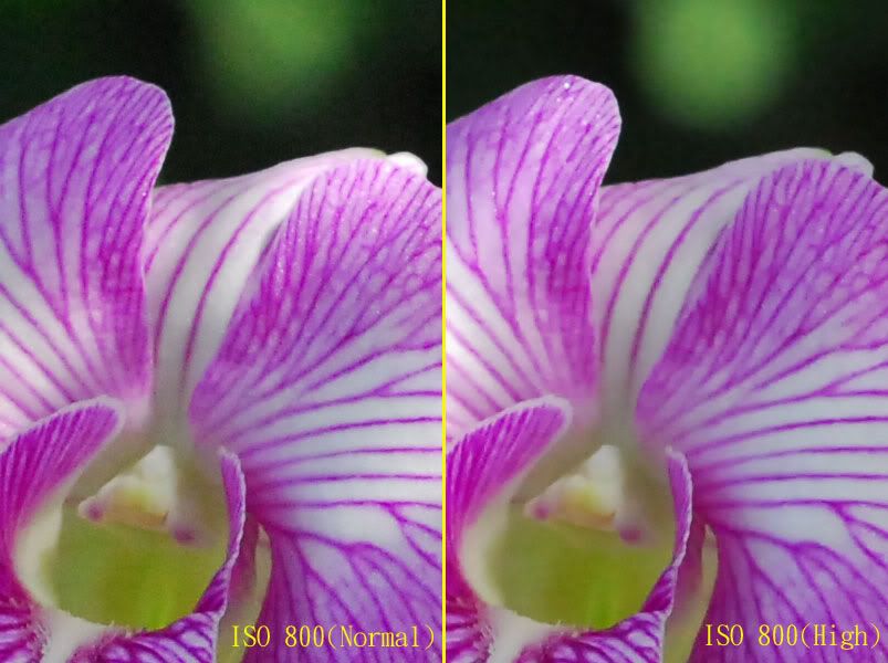 各位應該看得出來,在(含)ISO 400之前,開 “高”的選項是沒有意義的,而且反而喪失了細節,真的只有在ISO 800這樣的高ISO才能有真正的優勢(廢話)。
