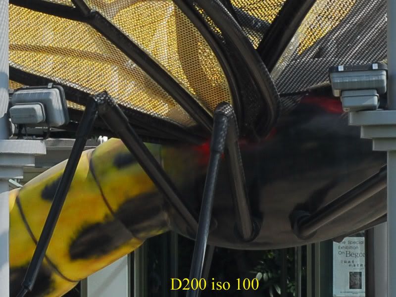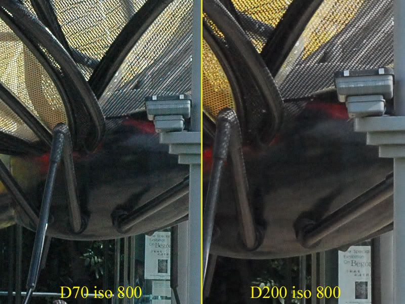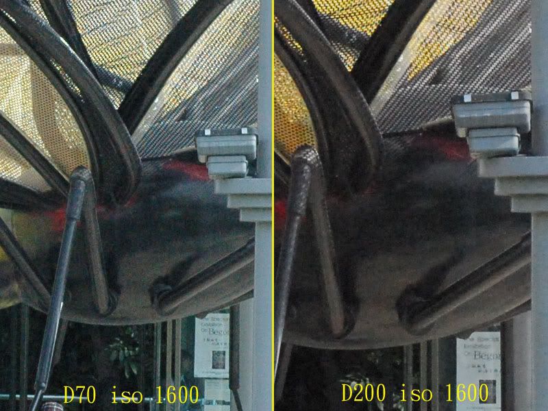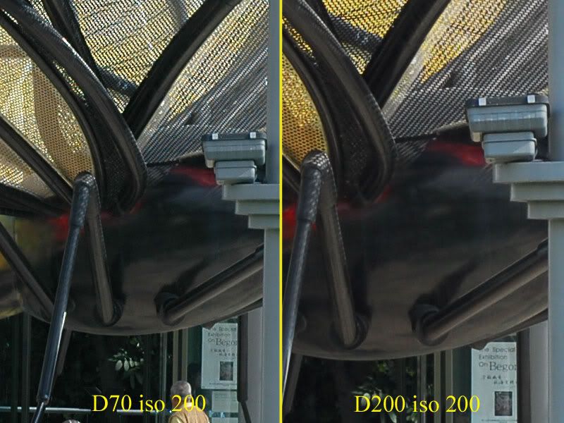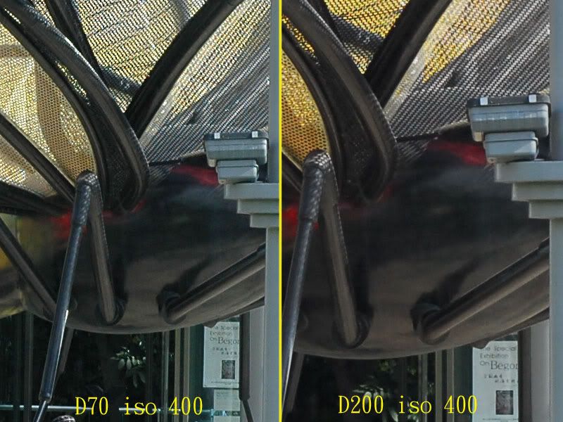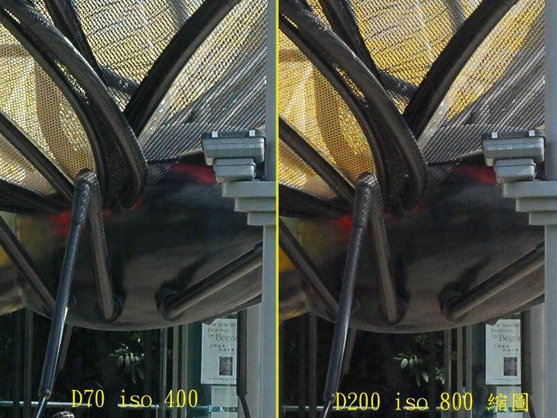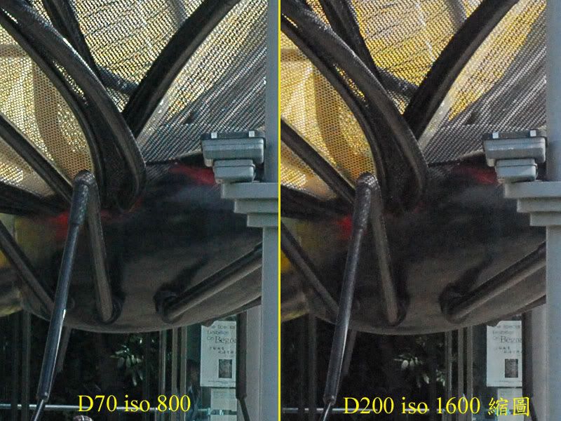 將D200的原圖縮圖,把D200的1020萬像素的圖先縮成和D70的600萬像素一樣(3000×2008),和上一級距的D70 ISO值做100%截圖比對。採用的當然還是是原先的圖。
