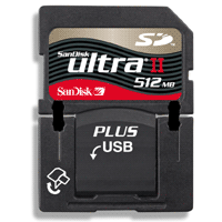 個人認爲設計沒有SANDISK的Ultra II SD Plus Cards好,Ultra II SD Plus Cards設計成一體機構,要用FLASH DISK的時候只要折下就可以了