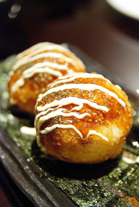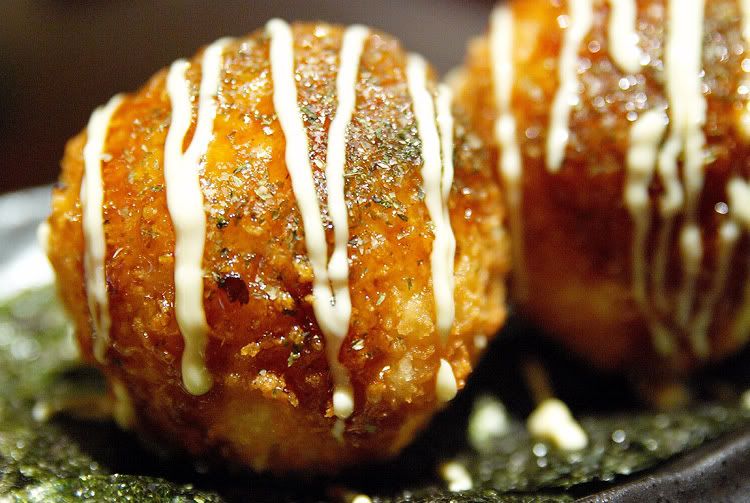飯團先炸後烤,再抹上特殊醬汁...外脆內軟.口水快留出來了.(ISO 800 F2.8 1/30sec).