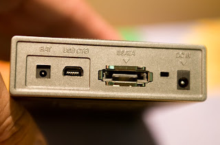 機體底部除了有DC電源接口以外、電腦在讀取ND2725時可以直接透過E-SATA讀取或者使用USB連結。
