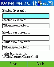請問CarrierBitmap 是指一開始 dopod 的畫面嗎,還是windows 的畫面如果是 windows 的畫面,那 dopod 可以改嗎?CarrierShutdownBitmap 這個應該是關機沒問題準備把最美麗的女主播和最美麗的女模特兒放到手機裡了,可是不確定哪個是哪個?麻煩是否能再說明一下,謝謝!!