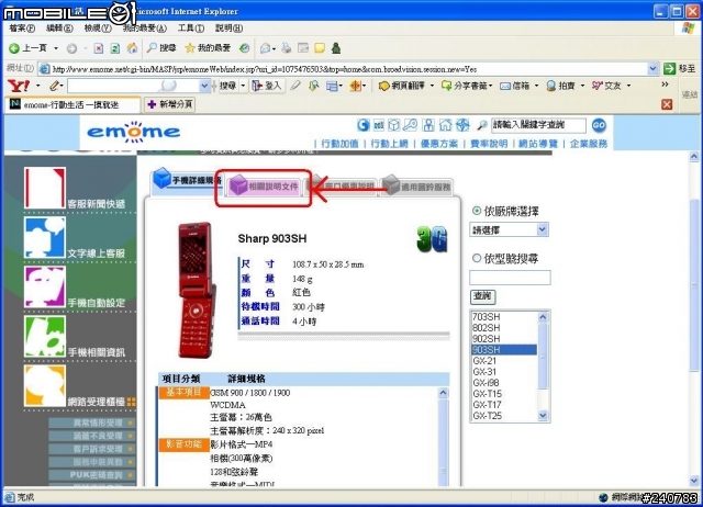 會看到903SH跟903SH_MAIL 第一個PDF是T91的上網跟MMS設定方式 第二個是收電子郵件(好顯這裡的連結還在XD)