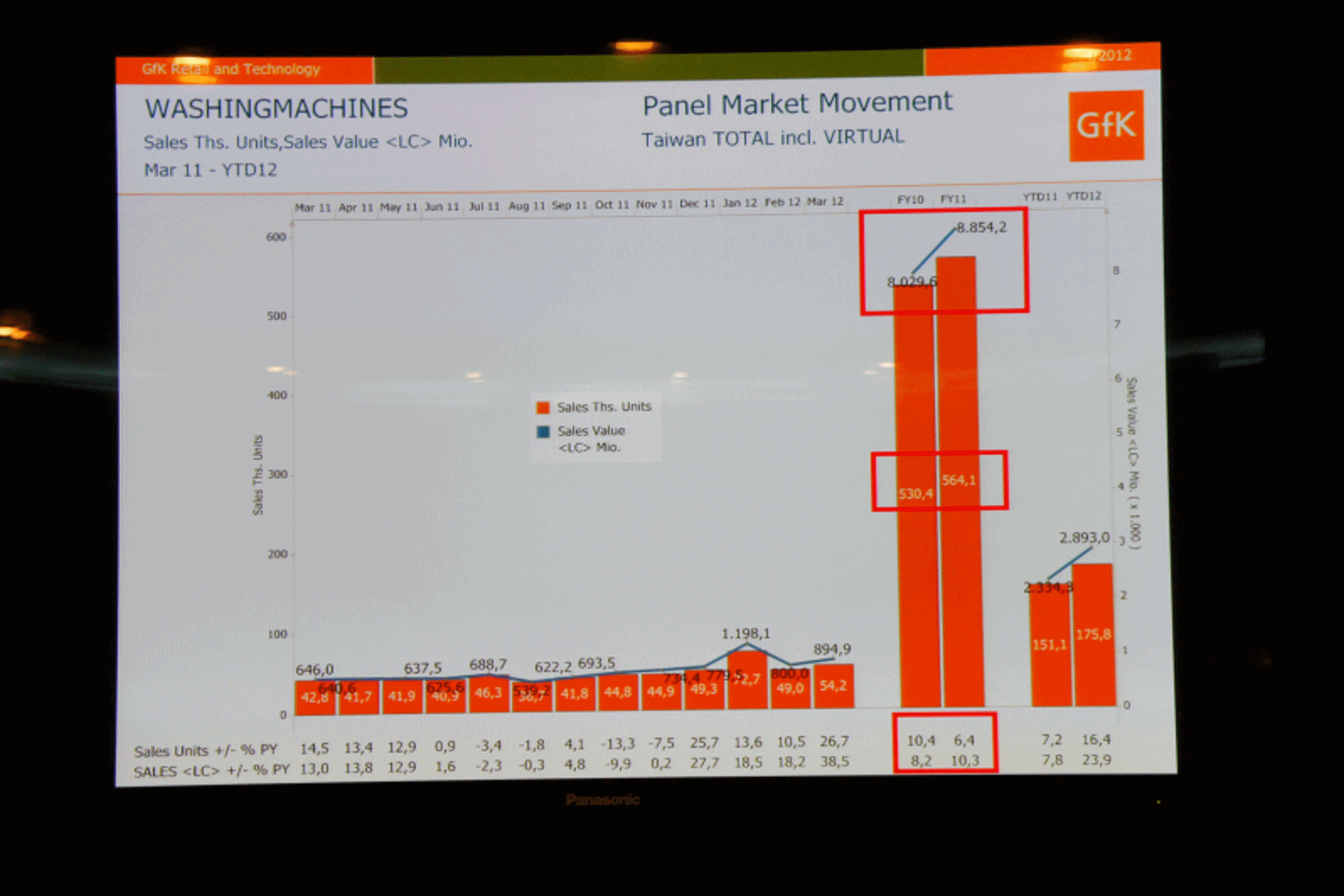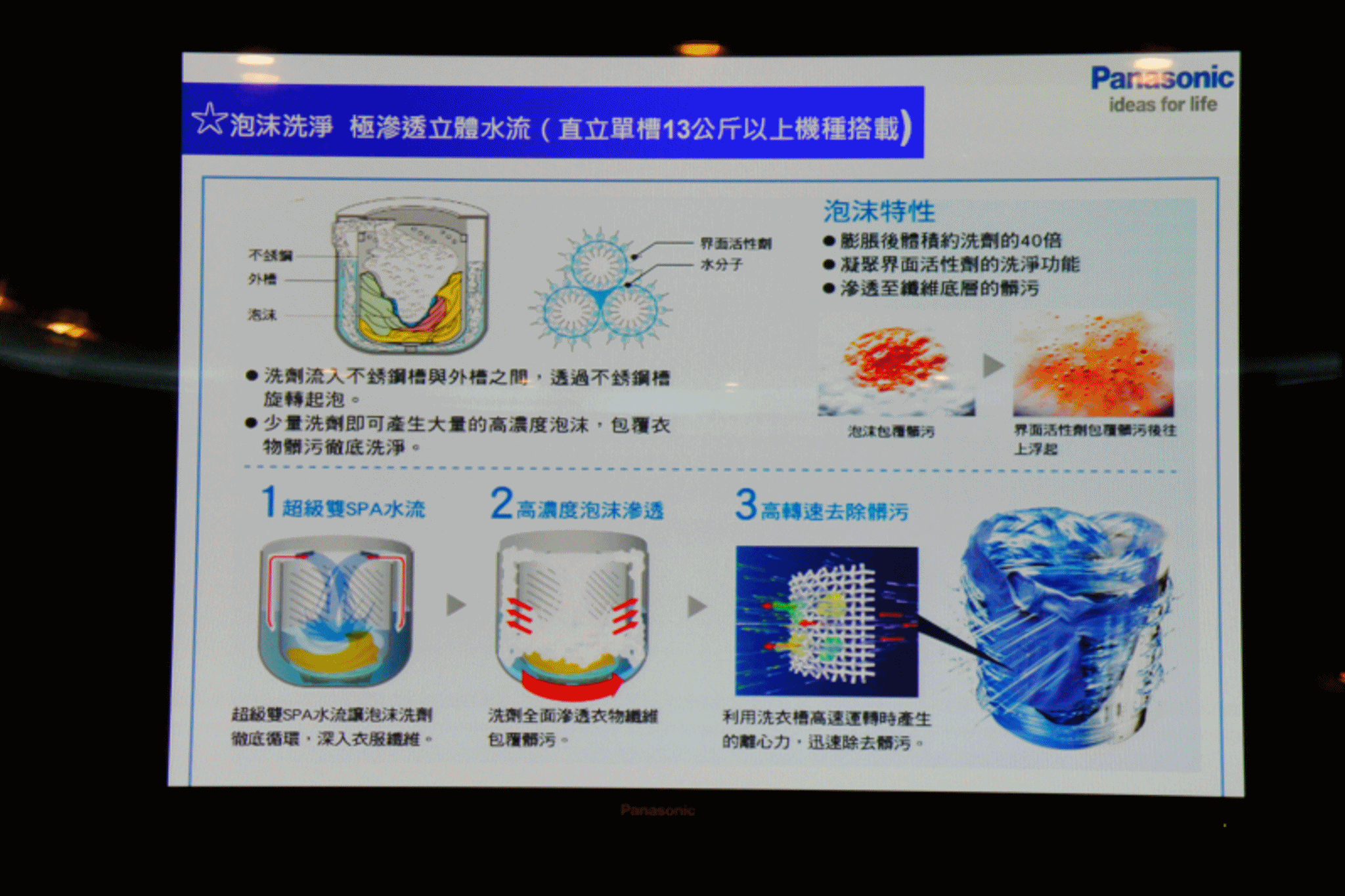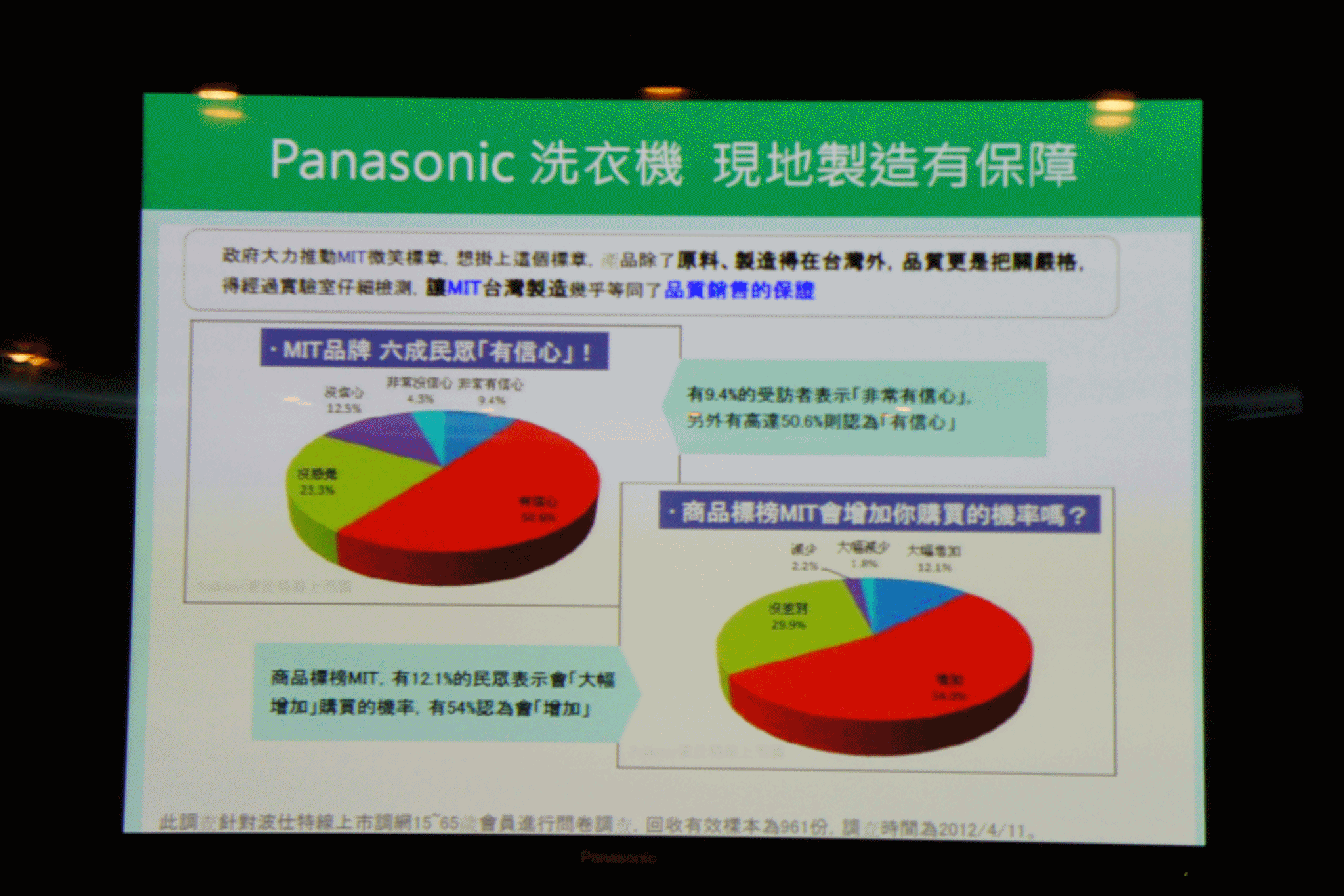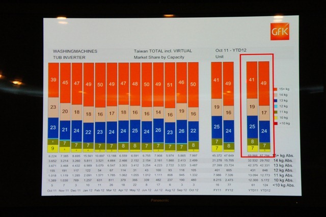 Panasonic在台灣一年約50萬台的洗衣機市場中,市佔率28.4%,是台灣地區的第一名。